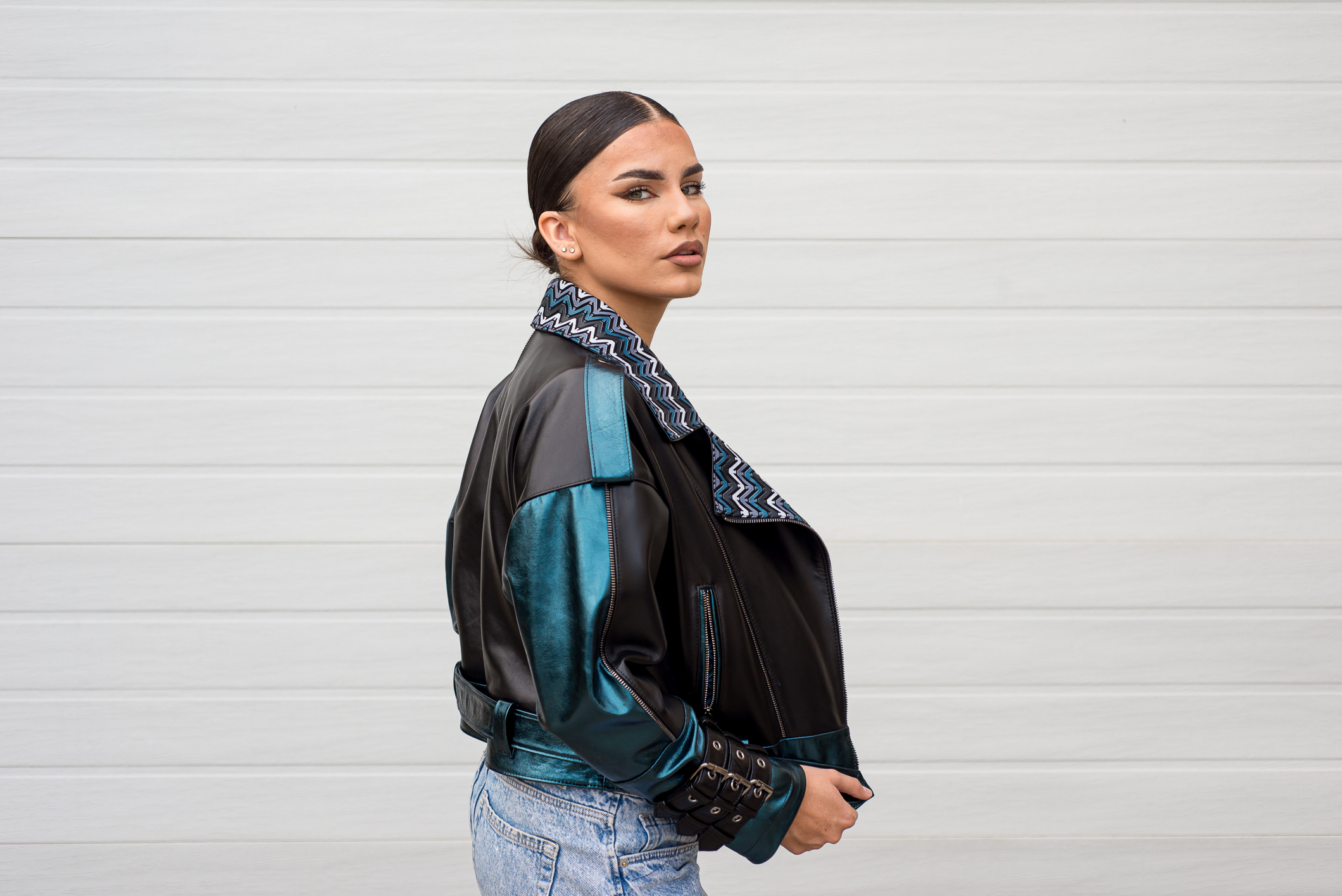 Kožna jakna modernog oversize kroja od mekane jagnjeće kože. Kragna na jakni je od prirodnog krzna lisice, može se skinuti i stavljati po potrebi. Model je unikatan.