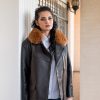 Kožna jakna modernog oversize kroja od jagnjeće kože. Postava: saten Šal od krzna lisice nije uključen u cenu. Cena šala je 6495 rsd.