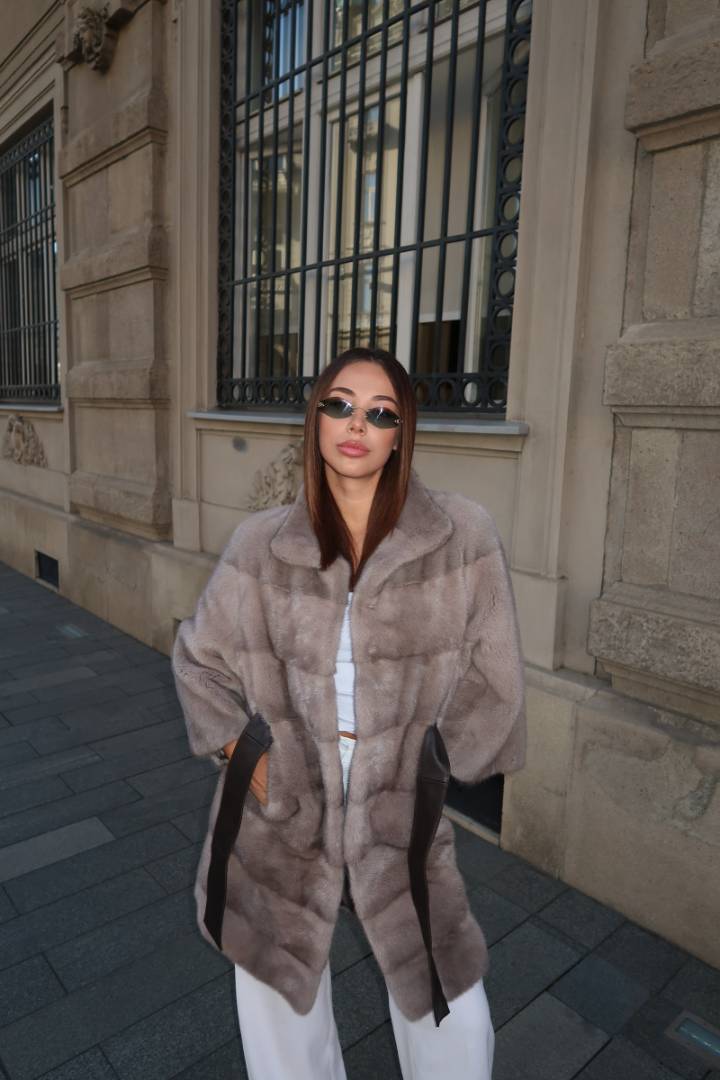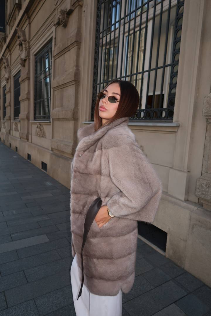 Ovaj elegantan model bunde izrađen je od najkvalitetnijeg prirodnog nerc krzna.